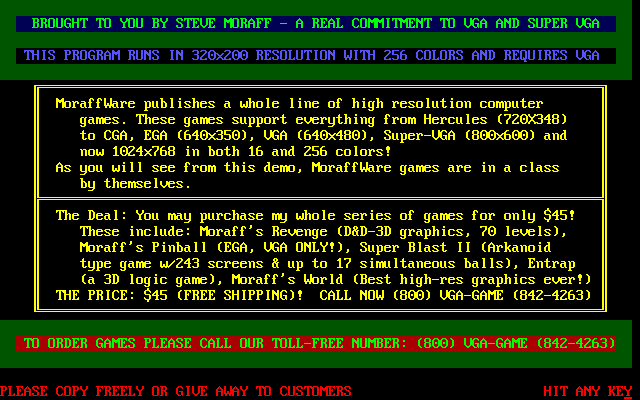 Developed by Moraffware, the game was part of the portfolio of titles released by the company in the early 90s. Known for creating intriguing and innovative software, Moraffware contributed several distinctive games during that period. This particular game reflects the experimentation and creative exploration typical of the era’s software developers.