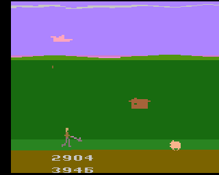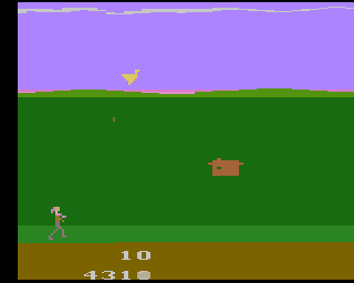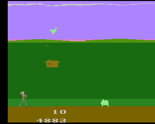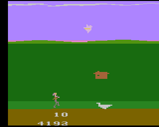 The visual design shows the technological limitations of its time, characterized by blocky graphics and a limited color palette. Despite this, the design effectively conveys the intent of the environment. The sound design is basic, featuring repetitive melodies and effects typical of early 1980s video games.