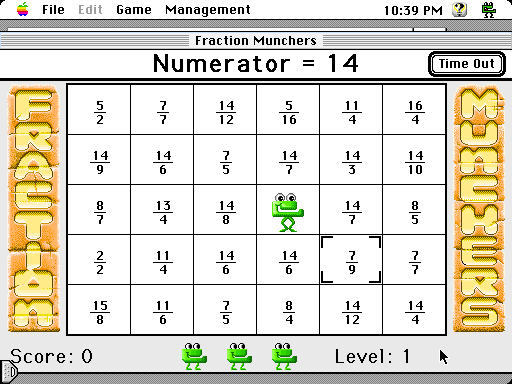 Players control a character who must munch on correct fractions to proceed. The game involves avoiding incorrect fractions and enemies that can impede progress. Each level increases in complexity, offering an incremental challenge that enhances the player’s mathematical skills over time. The game is structured to provide immediate feedback, helping players grasp the fundamental concepts of fractions through interactive gameplay.