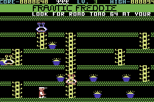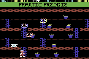 Released in 1983, Frantic Freddie is a platform game initially developed for the Commodore 64. In this labyrinthine game, players take on the role of Freddie, navigating through levels filled with ladders and obstacles, all while collecting treasures scattered throughout the screen. The game is distinguished by its straightforward yet challenging gameplay mechanics.