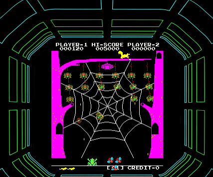 Released in 1981, this arcade game was developed by the renowned Taito Corporation, a company known for its pioneering role in the early video game industry. The gameplay challenges players to control a frog navigating a perilous environment filled with deadly spiders. The player’s objective is to reach the safe zones while avoiding the spiders, which become progressively faster and more challenging as the game advances.