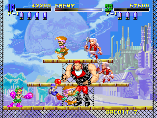 Released in 1992, this arcade-style action game brings a vibrant and engaging experience to players. Developed by Mitchell under a license from Data East Corporation, the game is characterized by its fast-paced gameplay and colorful graphics. It invites players on an exciting journey filled with adventure, challenging enemies, and creative level designs.