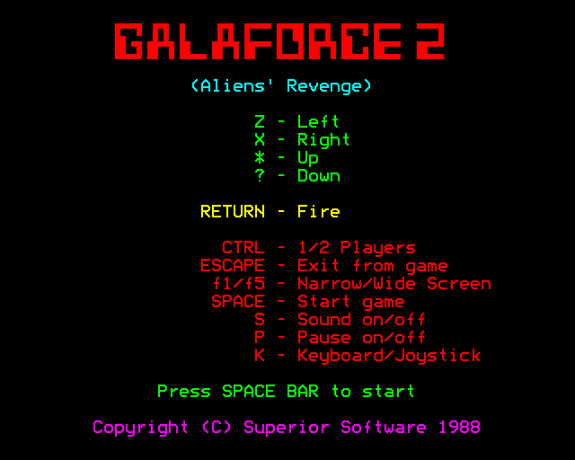 Released in 1988, this game is a classic space shooter that builds upon the mechanics and excitement of its predecessor. Players take on the role of a lone pilot battling through waves of alien enemies in their spacecraft. Designed for retro gaming enthusiasts, it retains the quintessential elements of 8-bit arcade action, promising a nostalgic journey through vibrant pixelated galaxies.