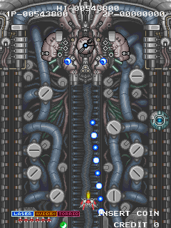 In the game, players control a spaceship, battling against numerous enemies and bosses. The gameplay is engaging, with power-ups scattered throughout the levels that enhance the player’s ship capabilities, adding a layer of strategy to the shooting mechanics. Players must skillfully maneuver through intense bullet patterns and defeat formidable adversaries to progress.