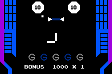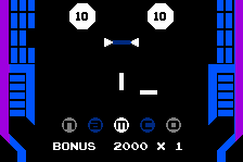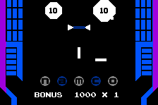 The game features traditional pinball gameplay with a twist. Players control a paddle that must bounce the ball into different areas of the screen to score points. The game focuses heavily on skillful play and precise timing to keep the ball in motion while targeting specific scoring areas to maximize points.