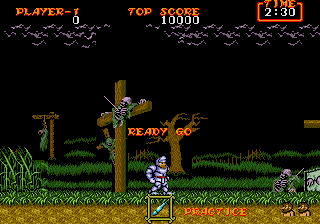 The gameplay retains the classic side-scrolling action that its predecessor was famous for. Players must navigate through various stages filled with demonic creatures and otherworldly threats. The protagonist, Arthur, utilizes an array of weapons, such as lances and daggers, to defeat enemies and powerful bosses. The game is notorious for its difficulty, requiring precision and skill to progress.