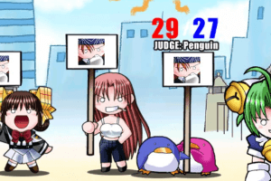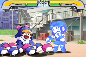 The game is presented in a vibrant, anime-inspired art style that is typical of many doujin games from its era. The whimsical and exaggerated character designs add a layer of charm and make each fight a visually engaging experience.
