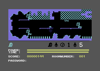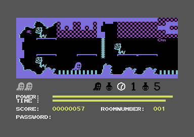 The gameplay is straightforward and accessible to players of all skill levels. The ghost character can float and pass through certain objects, offering a distinct gameplay mechanic compared to typical platformers of the time. Players must carefully time their movements and utilize these unique abilities to avoid dangers and gather essential items scattered throughout each level.