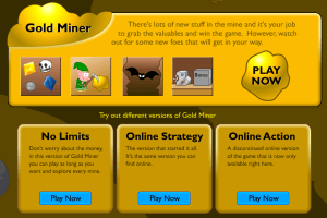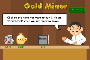 The player controls a miner with a claw-and-rope apparatus, which swings back and forth. By clicking a button, the claw is released to grab pieces of gold, rocks, or sometimes other treasures hidden under the earth’s surface. Each level has a minimum amount of money that the player must collect to advance to the next level.