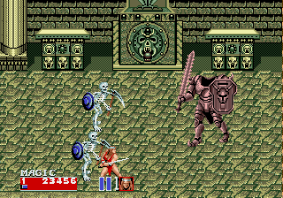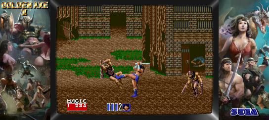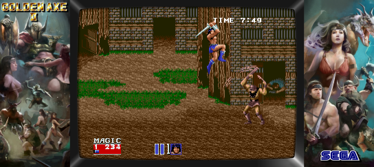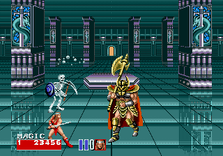 This sequel offers improved graphics and sound over its predecessor. Players can choose between three characters: Ax Battler, a fierce barbarian equipped with a broad sword; Tyris Flare, an agile Amazon warrior wielding a powerful blade; and Gilius Thunderhead, a sturdy dwarf with a devastating axe. Each character has their unique set of moves and special magical abilities to summon devastating spells on enemies.