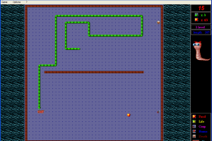 The game features a dynamic and progressively challenging environment where players control a worm navigating through diverse levels to collect food and avoid obstacles. As the levels advance, the speed increases, requiring quick reflexes and strategic planning. The goal is to achieve the highest score possible while managing the ever-growing worm size.