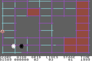 Released in 1983, this classic video game challenges players with a unique grid-based puzzle format. Set in a retro-futuristic world, players navigate through a series of levels, each with increasingly complex patterns to solve. The goal is to strategically fill in the grid in a specific sequence to advance to the next stage.