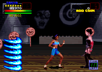 The game boasts colorful 2D animated graphics, portraying a gritty urban environment common in 1990s beat ’em up games. The soundtrack complements the action-packed gameplay with energizing music and sound effects, enriching the overall gaming experience.