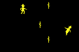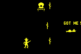 The game features a duel between two players, each controlling a cowboy on opposite sides of the screen. The goal is to shoot the opponent while avoiding obstacles such as cacti and wagons that move across the playing field. ‘Gun Fight’ is renowned for its simple yet engaging gameplay that captured the imagination of players during its time.