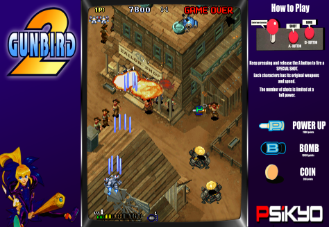 ‘Gunbird 2’ is a vertically scrolling shooter developed by Psikyo, released in 1998. It is the sequel to the 1994 arcade classic ‘Gunbird’. Known for its engaging gameplay and vibrant graphics, ‘Gunbird 2’ has been a staple in the shooter genre, combining whimsical storytelling with intense bullet-hell mechanics.