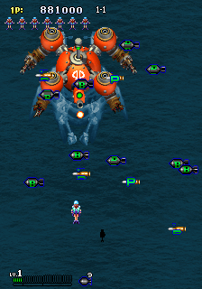 The game features fast-paced action where players can choose from a variety of characters, each with unique abilities and attacks. The objective is to navigate through waves of enemies, using power-ups and special items to enhance firepower and score points. The game is noted for its challenging difficulty levels and diverse boss battles.