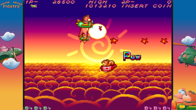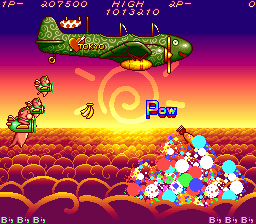 Released in 1991 by NMK, this arcade game is a classic shoot ’em up known for its whimsical and vibrant design. Set in a fantastical world where you control a small aircraft, the game involves intense air combat against swarms of enemy fighters and numerous boss battles. It combines elements of science fiction with cartoonish graphics, offering players a visually engaging experience.