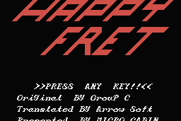 Released in 1985, ‘Happy Fret’ is a video game developed by the innovative team at Group C. This platformer is a classic example of 8-bit gaming that was popular in the mid-1980s. Although not as widely recognized as some of its contemporaries, it carved out a niche among enthusiasts with its unique approach to gameplay and artistic design.