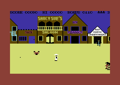 Players use a joystick and a set of buttons to move the sheriff around the screen and draw their weapon with quick reflexes. As the levels progress, the difficulty increases with faster and more cunning adversaries appearing.
