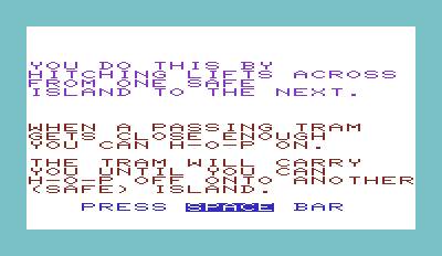 The visual presentation reflects the 1982 era, with pixel art graphics that offer a nostalgic feel for players familiar with games from that period. The sound effects are minimal but effective, creating an immersive ambiance typical of early video games.