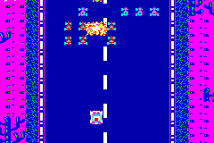 The game is built around a top-down perspective, where players navigate a vehicle across a multi-lane highway. The main objective is to catch up with and eliminate targets, which are marked as enemy vehicles. Players must avoid obstacles, such as civilian cars and roadblocks, while maintaining a high speed to successfully complete their mission.