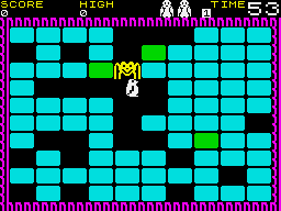 The game features graphics typical of the early 1980s with pixelated characters and environments. Despite the limitations of the era, the vibrant color palette adds life to the icy setting. The soundtrack is composed of simple electronic tunes that complement the game’s pace and atmosphere, providing an immersive arcade experience.