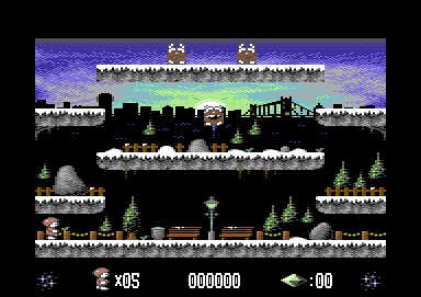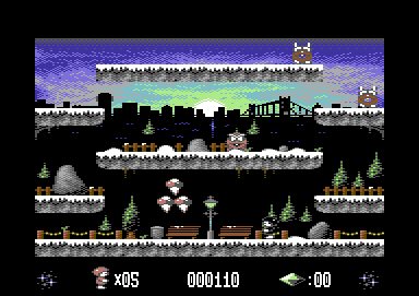 For a game of its era, it features impressive graphics, utilizing the Commodore 64’s capabilities to present charming and vibrant visuals. The environments are artistically designed to convey a frigid, yet enchanting atmosphere. Accompanying the visual experience is a soundtrack that complements the game’s theme, immersing players in its icy world.