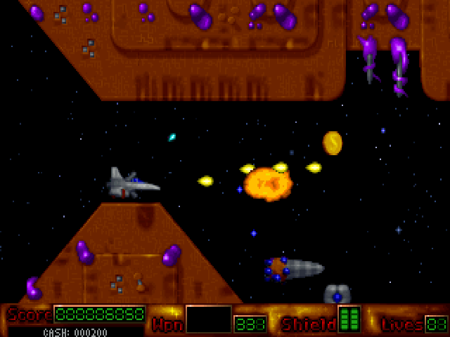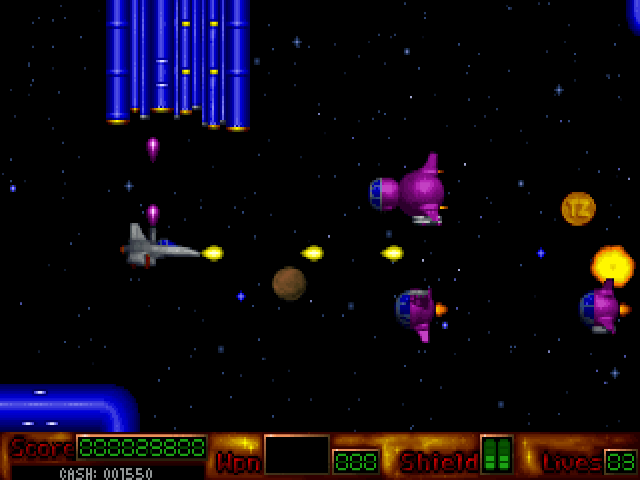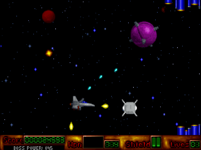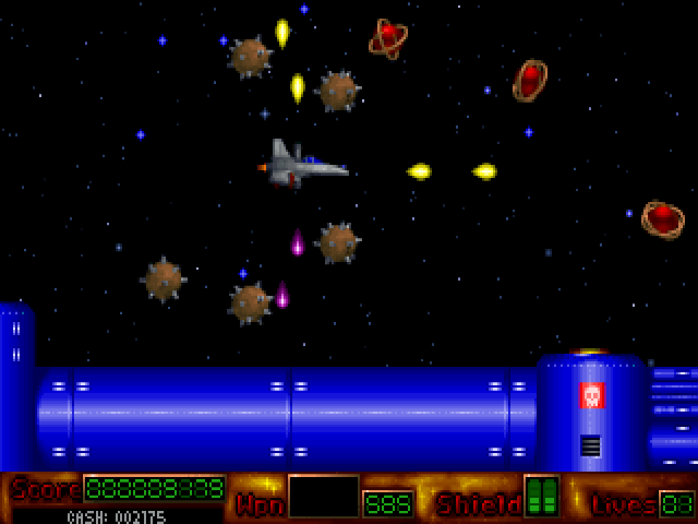 The game invites players to control a heavily armed spacecraft, traversing through various levels filled with relentless enemies and challenging bosses. Each level presents unique obstacles and requires precision shooting and quick reflexes to survive. Players can collect power-ups to enhance their ship’s weapons, adding variety and strategy to the gameplay.