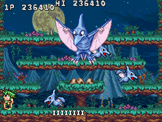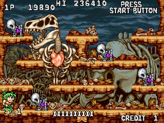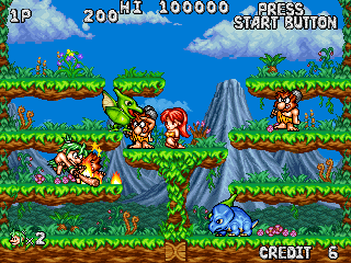 The game released in 1994 by Data East Corporation, continues the prehistoric adventures of its predecessors with a twist of platforming fun and increased complexity.