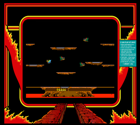 Released in 1982 by Williams Electronics, Inc., this arcade game offers a unique and intriguing gameplay experience. Players take on the role of knights mounted on flying ostriches, engaging in battle across a series of platforms and ledges. The primary objective is to defeat waves of enemy knights by dismounting them from their steeds through aerial combat.