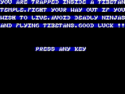 The game is a classic 1986 release that immerses players into an adventure filled with exploration and challenges. This game was designed to fit the style and limitations of the hardware of its time, offering a unique experience that enthusiasts of retro gaming can appreciate.