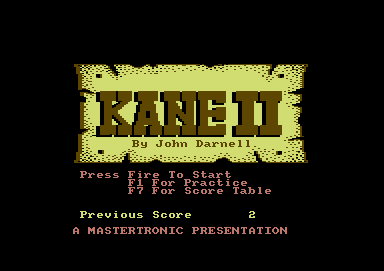 Kane 2 is a 1988 action game developed by Mastertronic, the sequel to the original Kane game released in 1986. It continues the Western theme with players taking on the role of a cowboy engaging in a series of varied challenges and missions.