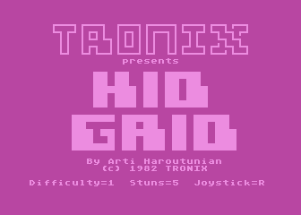 Released in 1983, Kid Grid is a fast-paced arcade-style puzzle game that was developed and published by Western Technologies. Available for the Commodore 64, this game combines elements of strategy and quick reflexes as players navigate through a colorful grid.