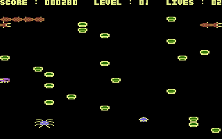The gameplay is characterized by rapid movements and strategic navigation. Players must utilize quick reflexes to dodge incoming hazards while eliminating enemies. The game tests both precision and timing as each level increases in difficulty, offering a nostalgic yet engaging experience reminiscent of the classic arcade era. Power-ups scattered throughout the levels provide temporary advantages, such as increased speed or the ability to overcome otherwise deadly threats.