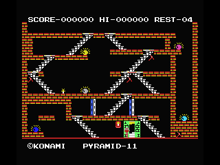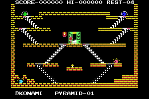Released in 1985 by Konami Industry Co. Ltd., this puzzle-platform game challenges players to explore ancient pyramids filled with treasures and deadly traps. The objective is to collect gems and navigate through intricate mazes, avoiding enemies and obstacles along the way.