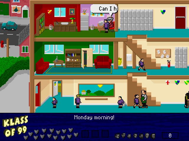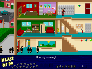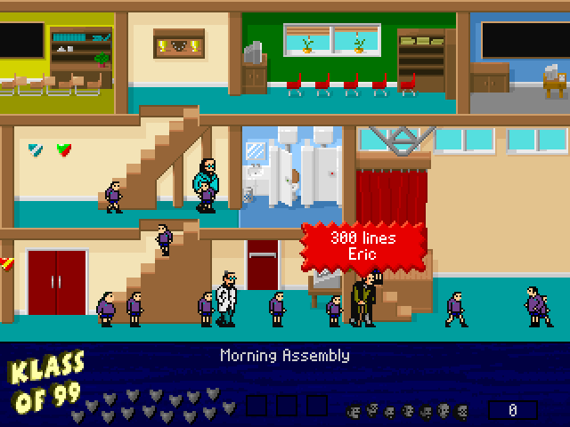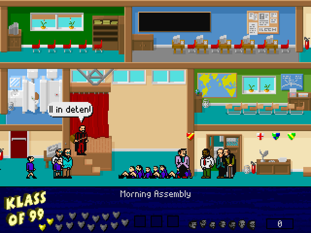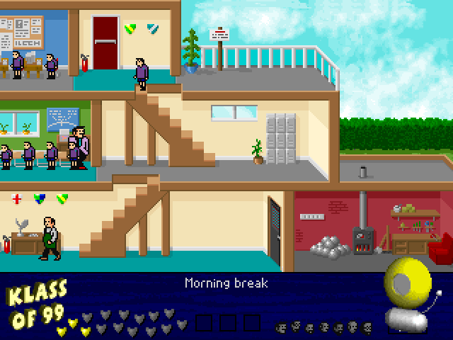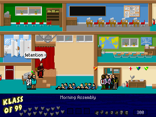 The game preserves the nostalgic ethos of the original title, combining traditional platform puzzle mechanics with updated graphics suitable for the ’99 release. Players navigate through various levels within the school, avoiding obstacles and utilizing classroom tools to gather students. It requires a balance of speed and planning, as each level grows increasingly complex.