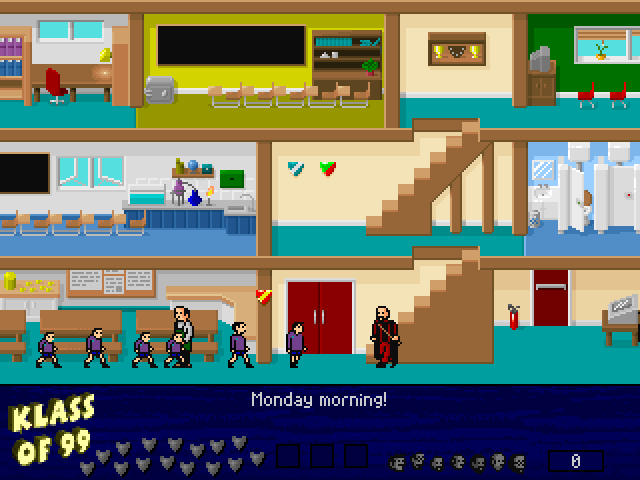 Klass of ’99 is a computer game released in 1999, developed by RetroSpec. It is a remake of the classic platform puzzler that originally appeared on 8-bit computers. The game challenges players to take on the role of a teacher trying to collect all the students in a chaotic school environment. Each level requires strategic thinking and precise movements to round up the unruly students and bring order to the chaos.