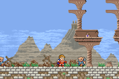 The game is characterized by its engaging platforming elements and a variety of enemy types that challenge players’ reflexes and timing. Tonma is armed with a magic projectile to defeat foes and can also collect power-ups along the way to enhance his abilities. The levels are richly designed with hidden paths and secrets, encouraging players to explore thoroughly as they advance.