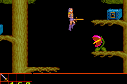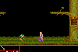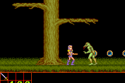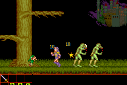 The game features classic side-scrolling action, where players control a hero equipped with a sword to defeat foes and overcome challenges. The levels are designed with multiple layers and pathways, encouraging exploration to find power-ups and secrets. The player must navigate through diverse environments, ranging from haunted forests to ancient ruins, each presenting unique challenges and adversaries.