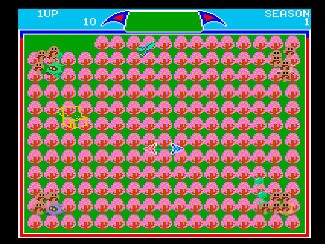 The primary aim is to capture all the mushrooms on each stage while dealing with the constant threat of enemies disrupting your plans. The game features a time limit, pushing players to complete each level efficiently. Completing levels unveils more challenging stages with increasingly complex layouts and enemy patterns.