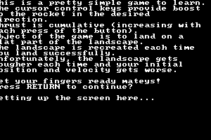 Although not widely renowned in gaming history, the game contributed to the genre of space simulations, offering a foundational experience that influenced the design of future lunar landing games. Its realistic approach to celestial physics was notable for its time, and it served as an educational tool for understanding the challenges of space navigation.