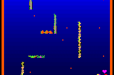 The game challenges players to navigate through various underwater levels, engaging in combat with marine creatures and enemy submarines. The objective is to complete missions while managing resources and avoiding obstacles. The controls are simple yet require strategic thinking and quick reflexes to succeed.