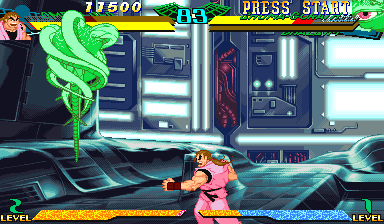 The game showcases vibrant, detailed sprites and fluid animations, staying true to the comic book origins of the characters. The sound design includes impactful fighting sound effects and an energetic soundtrack that enhances the gameplay experience.