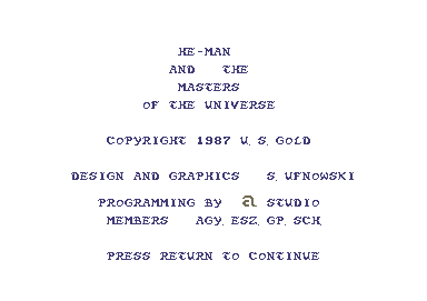 Released in 1987 by Adventuresoft UK Ltd., this arcade game is inspired by the popular Masters of the Universe franchise. Set in the fantastical world of Eternia, players join He-Man in his quest to defend the realm from the evil Skeletor and his minions.