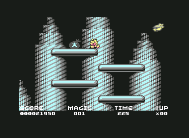 Mayhem in Monsterland, released in 1993 and developed by Apex Computer Productions, is a vibrant platform game for the Commodore 64 that showcases the impressive capabilities of the system towards the end of its commercial life. The game’s protagonist, Mayhem, is a dinosaur with a mission to restore color and happiness to the once vibrant Monsterland, which has been taken over by the evil magic of the sorceress Thelric.