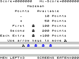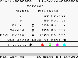 The objective is to skillfully maneuver through each maze, collecting items and avoiding confrontations with adversaries scattered throughout the maze. The control scheme is straightforward, emphasizing quick reflexes and strategic planning to progress. With each level presenting increasing difficulty, players are tested on their ability to react and adapt to changing challenges.