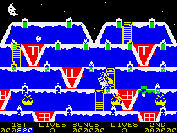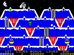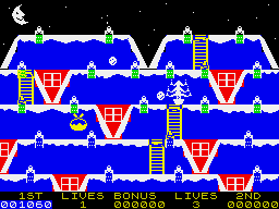 The game features vibrant, colorful graphics typical of the time, with a charming 8-bit style that remains nostalgic for many players. The soundtrack includes catchy chiptune versions of classic holiday music, adding to the festive atmosphere.