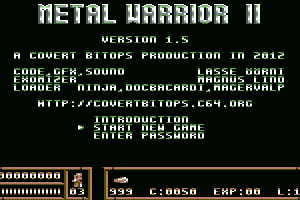 Developed by Covert Bitops, Metal Warrior II was praised for pushing the limits of the Commodore 64 hardware. The game features detailed graphics and an atmospheric soundtrack that complements its intricate level design. It is noted for its ambitious scope, given the limitations of the platform it was built on.