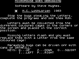 Micro Mouse Goes De-bugging is a classic maze-based game released in 1984. In this game, players take on the role of a small mouse navigating through a series of intricate mazes filled with obstacles and enemies. The objective is to collect all the scattered pieces within the maze to advance to the next level.