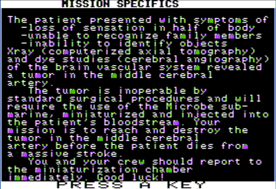 Set in a unique and challenging environment, this game takes players on an exciting journey through the microscopic world. Released in 1982 by Synergistic Software, Inc., it allows players to explore the human body from the perspective of a microbe. As you navigate through various levels, you must solve puzzles and overcome obstacles, making it an engaging and educational experience.